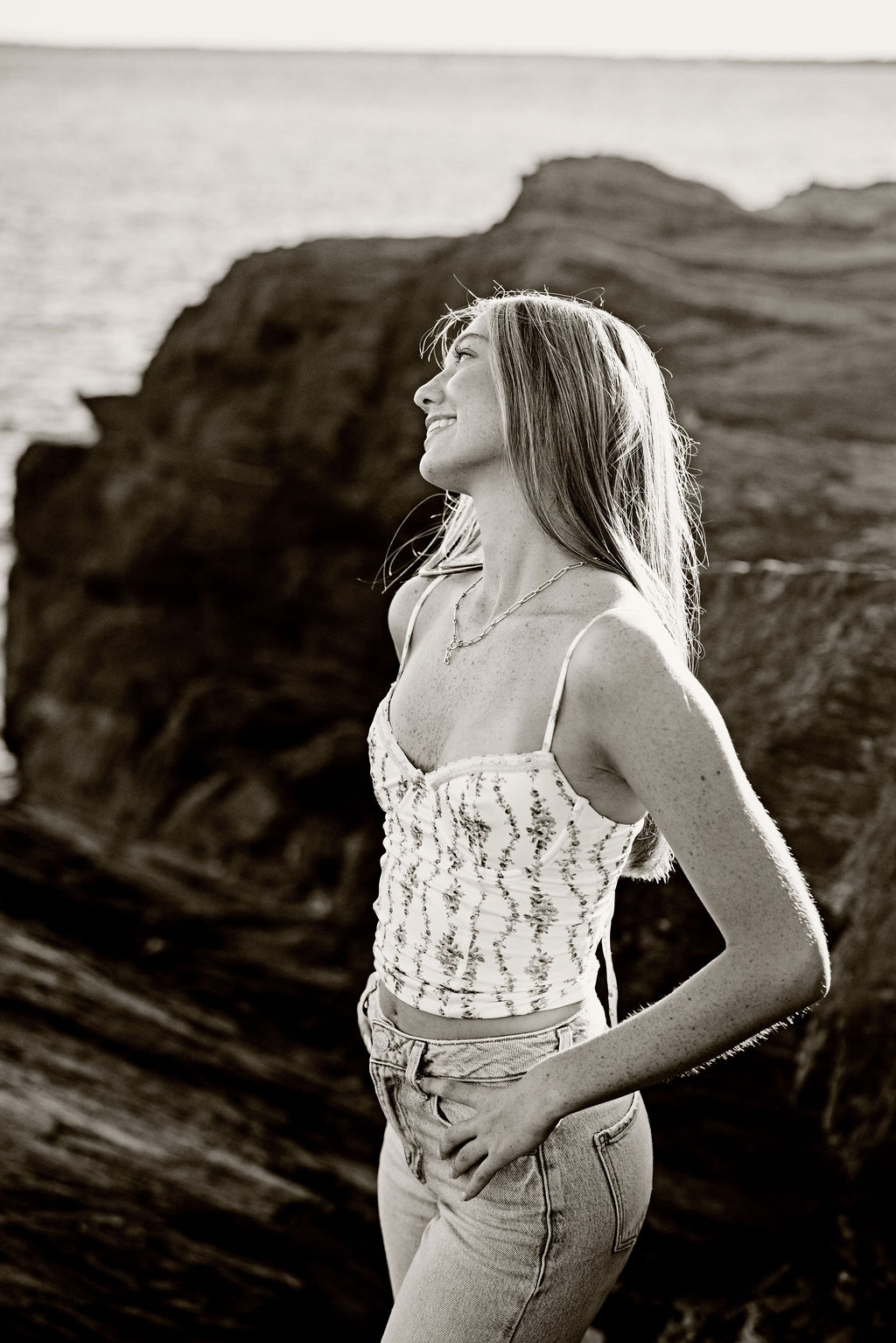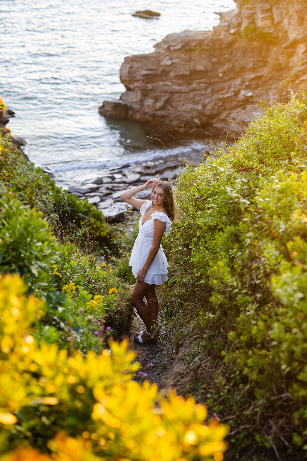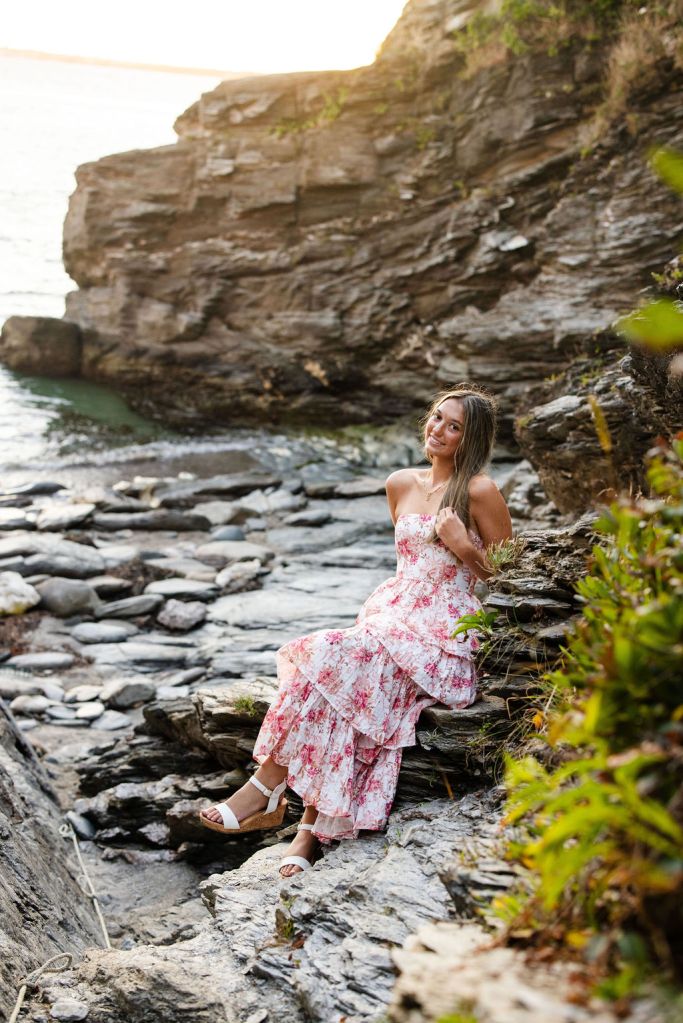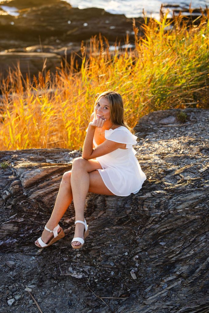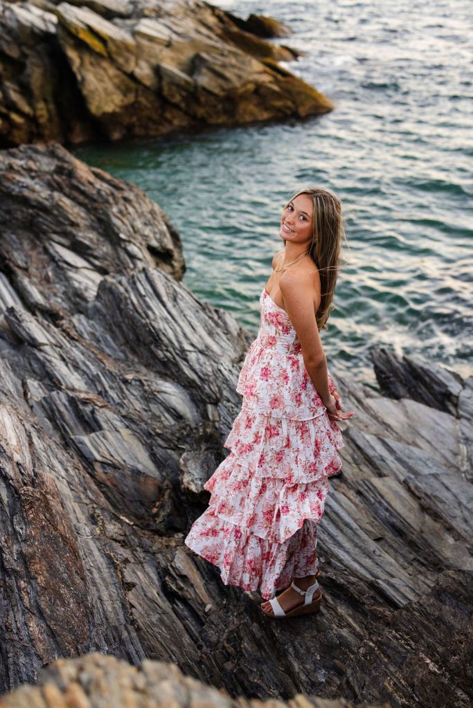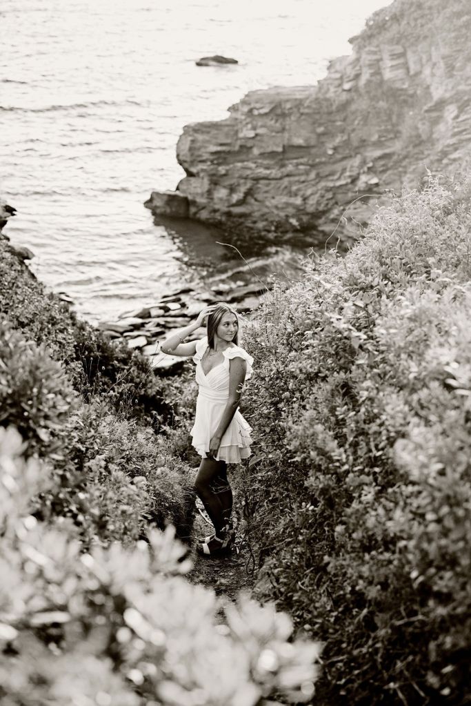 For her senior session, she knew she wanted a location with both greenery and water, which made Beavertail in Jamestown, RI the perfect choice.