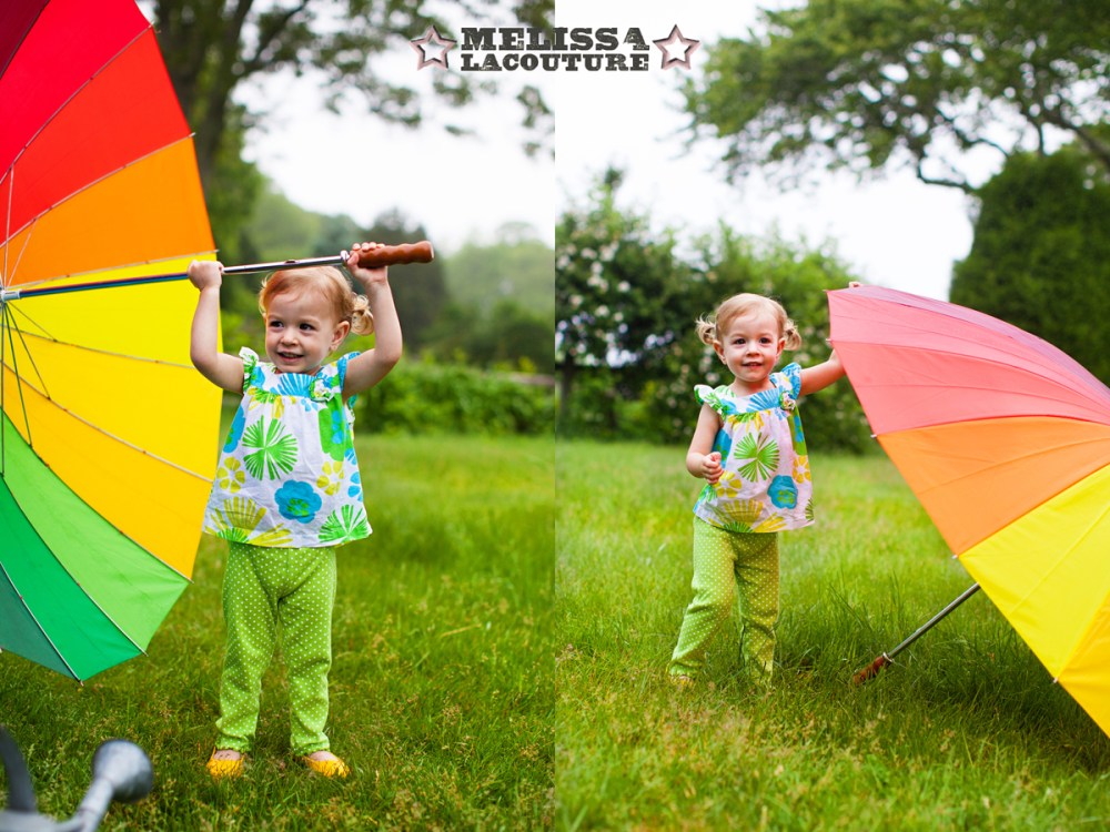 It was a misty day and I happened to have a pretty awesome rainbow umbrella. It is sort of huge, but Luci was still excited to play with it.