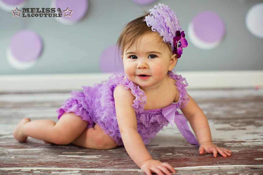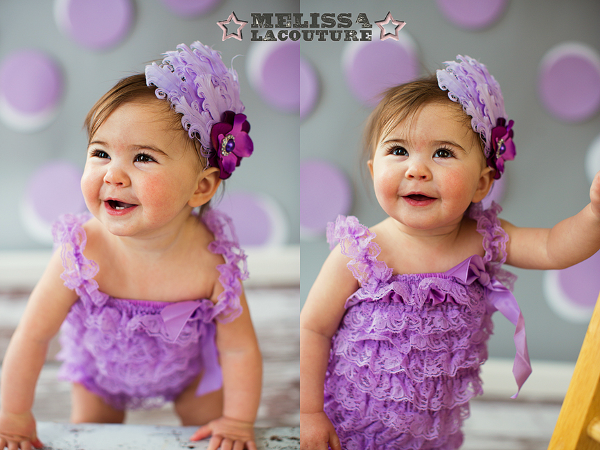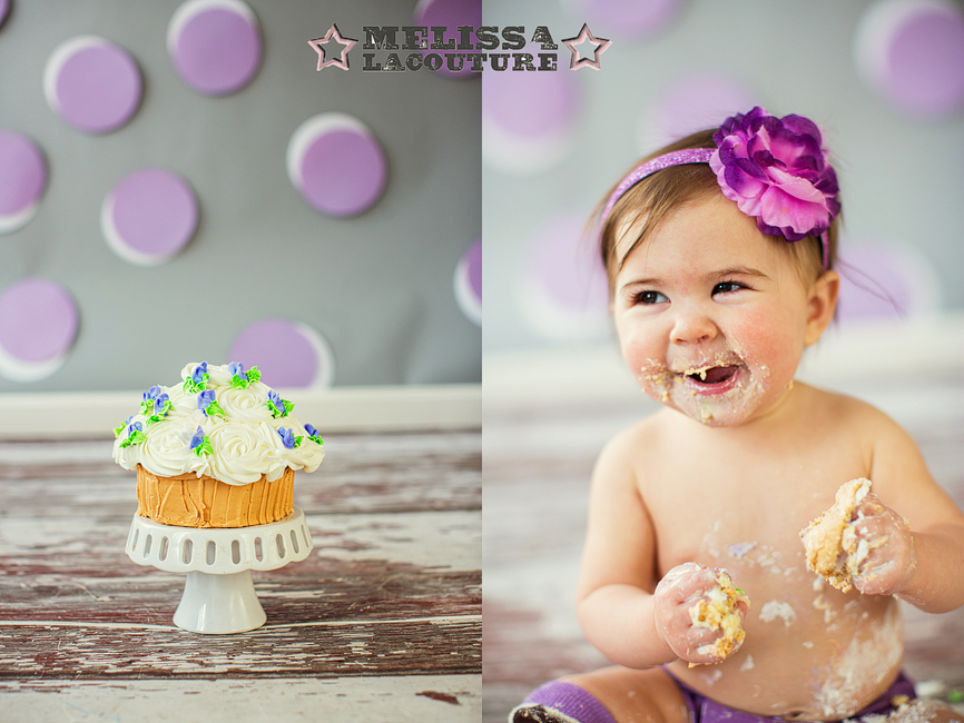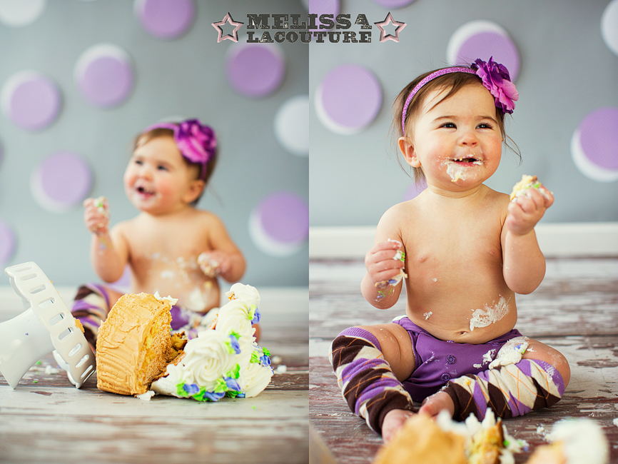 I’ve been doing photos of this little lady’s two older sisters for a while now. I can’t believe it’s now her turn for her very own cake smash! A year goes by so, so quick! We planned to go with the color purple. I was blown away when mom came in with the most amazing accessories and outfits every! I mean a baby fascinator?! We can thank Kayleigh’s Klippies for all the beautiful stuff our fashionable subject is wearing. Check out her stuff on etsy or at the fabulous Bellani Maternity. As alway the smash cake was provided by Cake-tique. Someone must have heard the words “Cake Smash” and didn’t want to disappoint. Within 10 seconds the cake was on the floor! You never know what’s going to happen at these sessions!