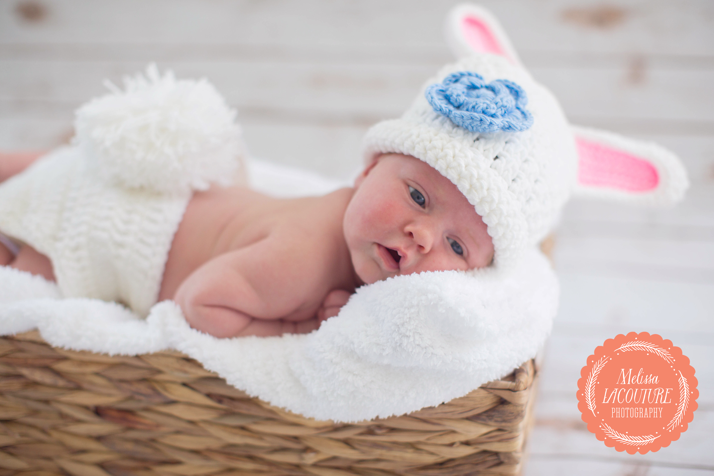 I just love my job! It gives me the opportunity to meet so many new people and families. It also puts me in contact with little tiny babies! It isn’t everyday that you get to hold a newborn. Thankfully I get to hang out with my fair share of them otherwise I might have seven children instead of just two. This little girl was about three weeks old when we did her portrait session. She was so sweet and patient with me and her mom putting her in baskets, boxes, a wagon, dressing her up as a bunny, sticking bows on her head… She didn’t make a peep and happily went along with the craziness that we put her through. The result is some really adorable pictures she’ll have for a lifetime.