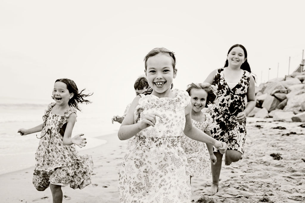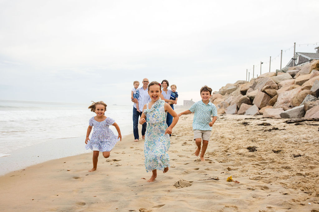 Beach sessions also naturally encourage interaction. Kids can move, cousins can play, and grandparents can relax — which results in portraits that feel genuine and full of life.